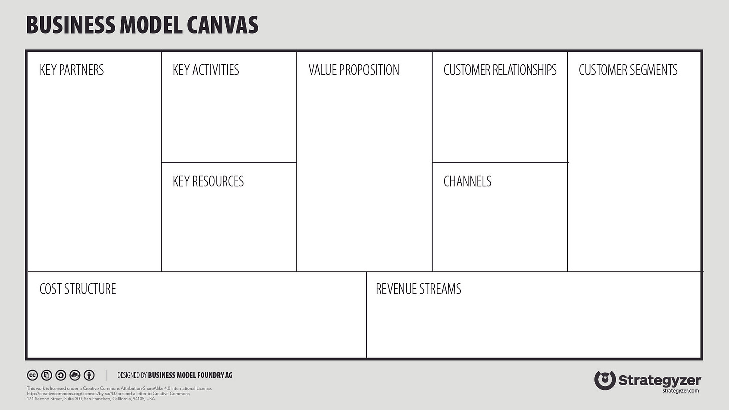 Last week we discussed how AI needs a strategy to be integrated into your organisation. Today, I want to use my favourite strategy design tool, the business model canvas (BMC) to explore how we can infuse that with AI and create new opportunities.